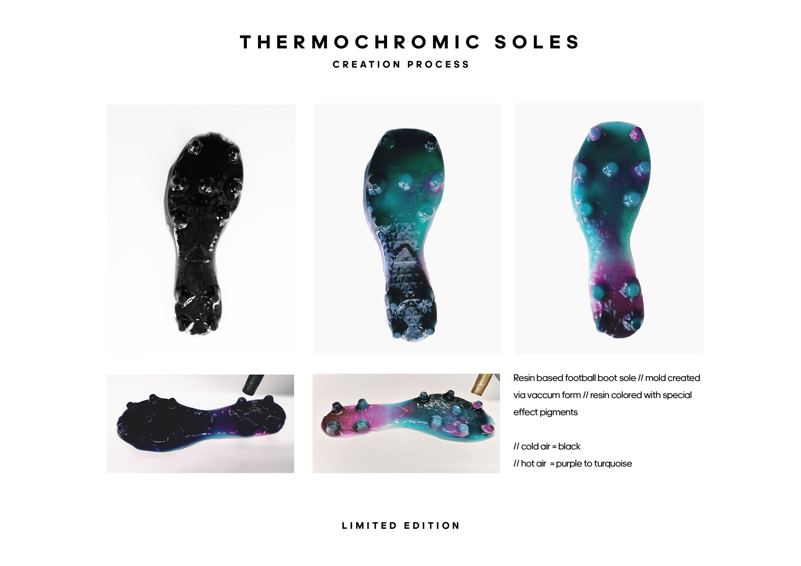 All eyes on the tooling, the faster you play they faster you achieve greatness. Color reveal through thermochromic inks in resin. purple/green color shift defines the underdog, the mystery behind who they are. Those who come out in the last minutes and steals the win.