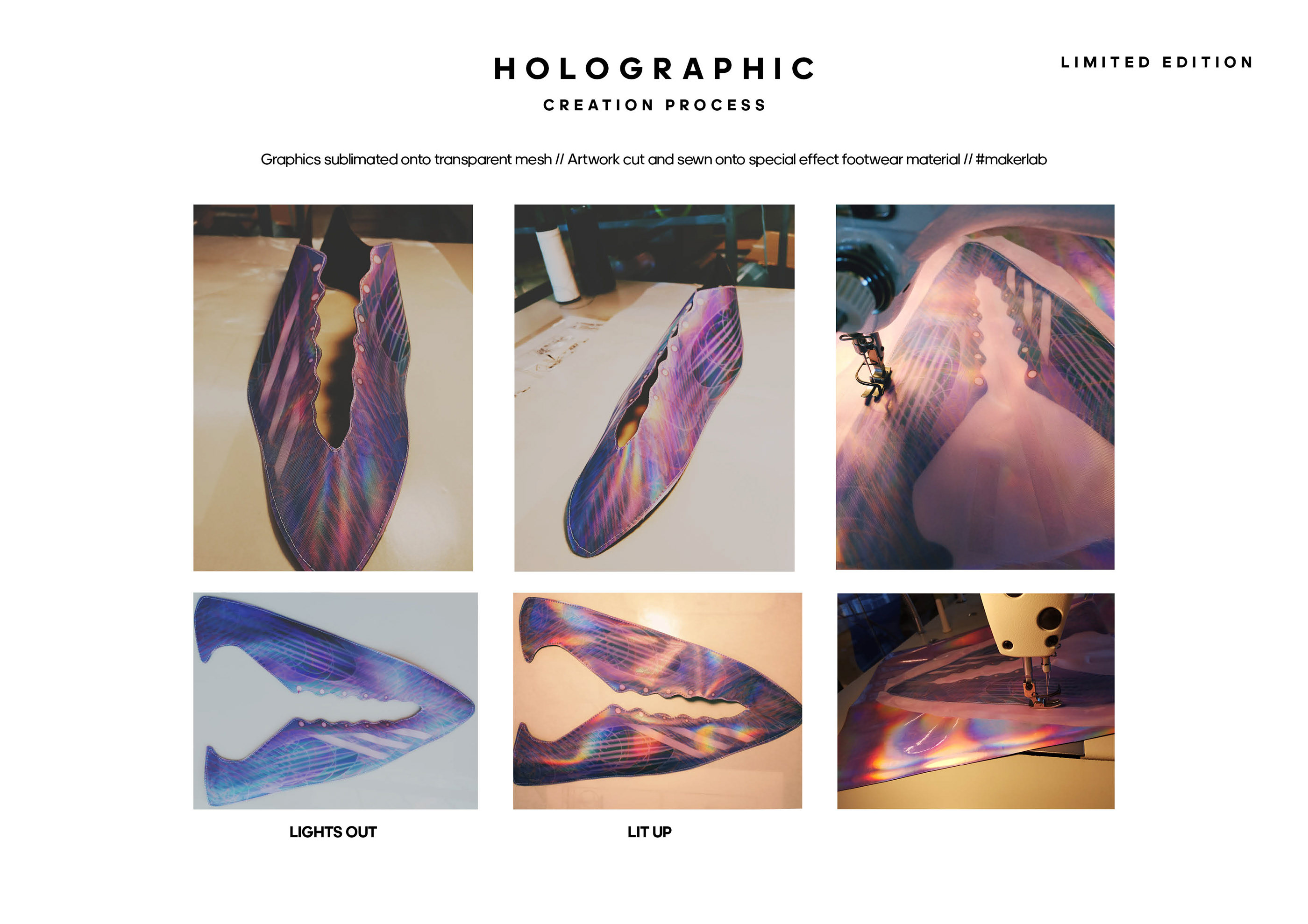 The idea of using special colors in a graphic sublimation to great a holographic shift and color change in day and night. Below are the trials of a sublimation graphic on a mono mesh and bonded to a synthetic base to give to appearences of the material when the light shines on it. Womens world cup women should be featured and glowed upto the max, let them stand out!