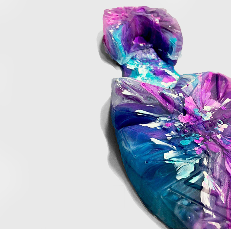 By mastering fundamental art techniques, we’ve unlocked the ability to evolve and tackle more intricate design processes. What began as fluid art on 2D flat canvases transformed into an exciting challenge: how could this process take on a three-dimensional form? What shapes could be more captivating than a simple square?