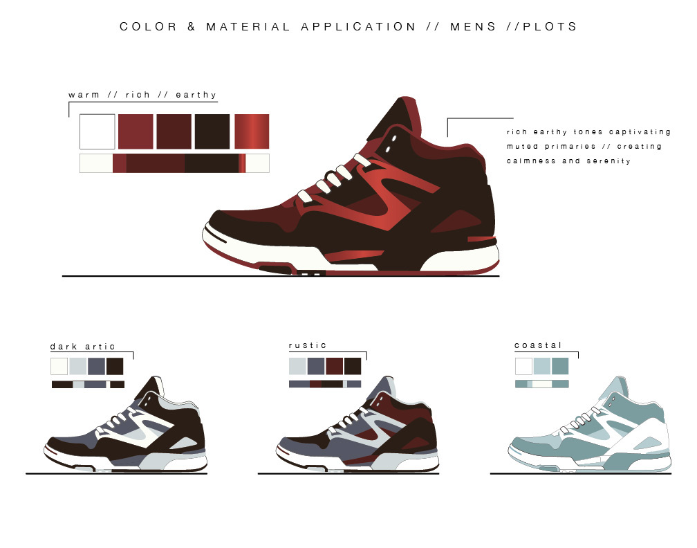 CMF: Using heavy auburn, deep mauve and navy hues that provide a feeling